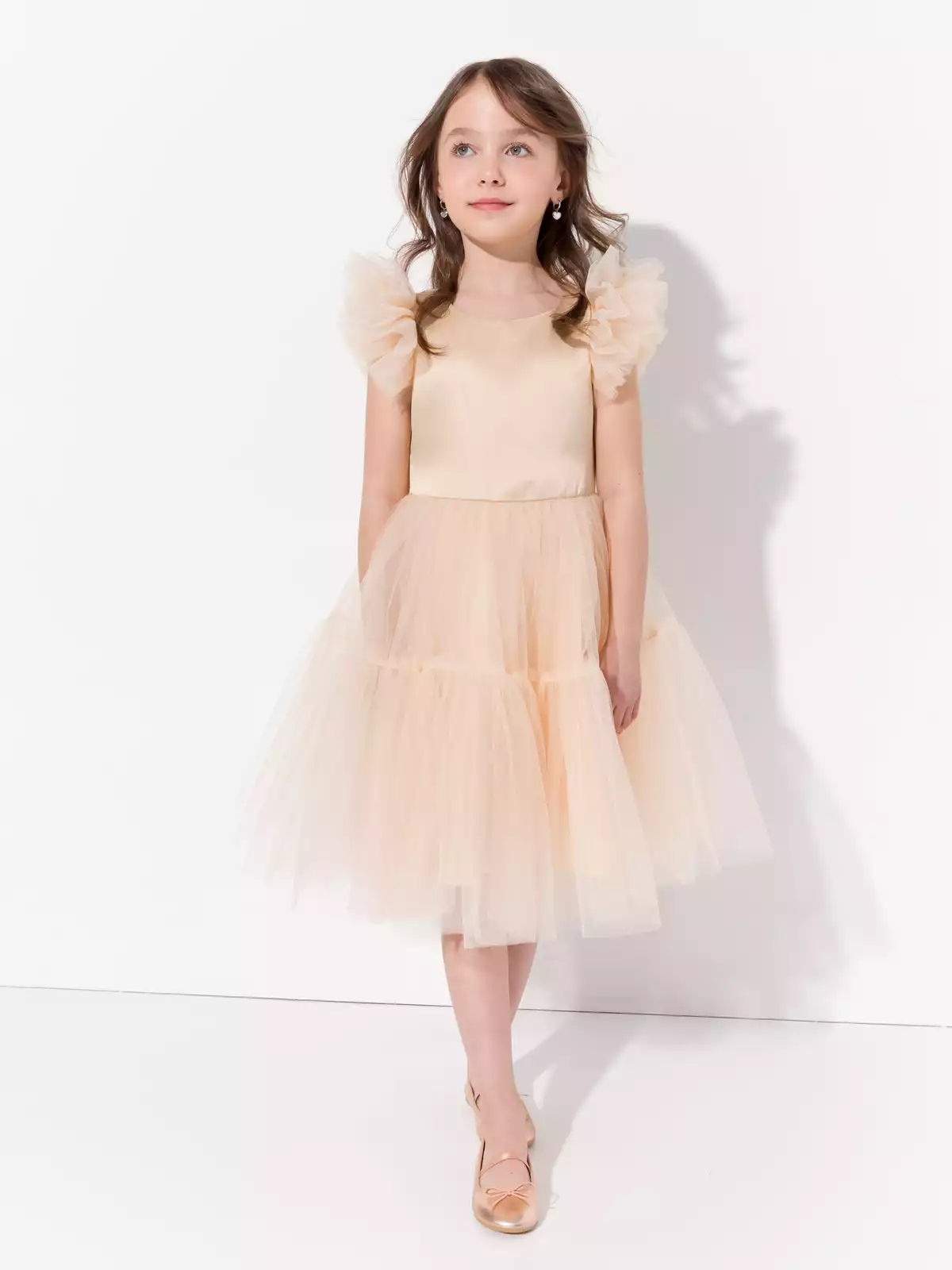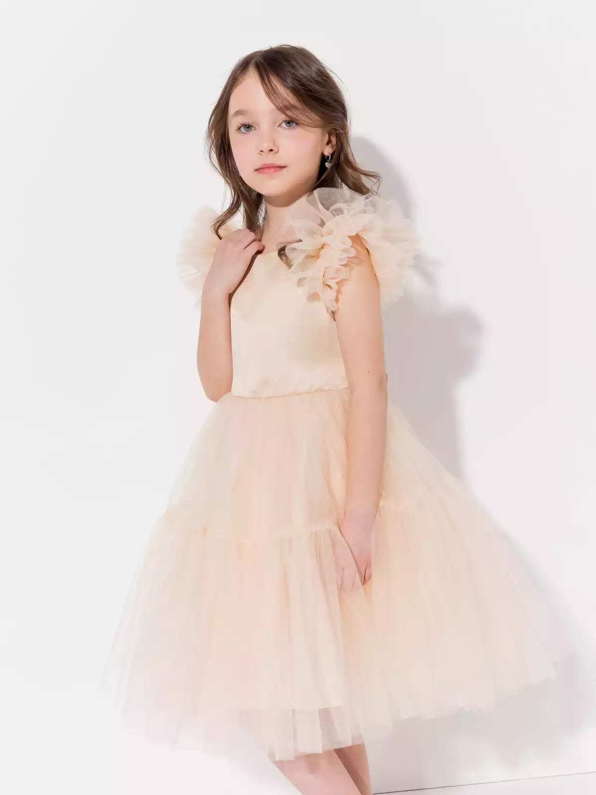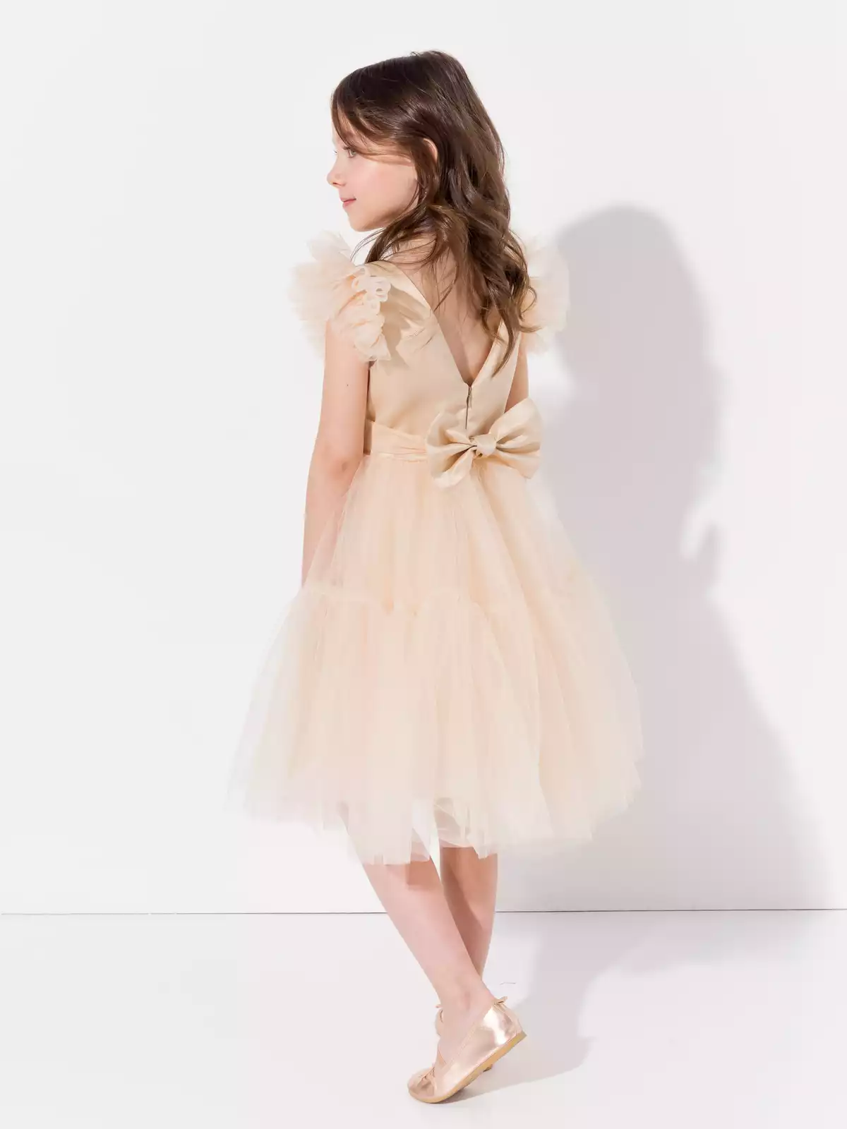 Невероятно пышное многослойное платье роскошно смотрится на фигуре юной леди. По спинке застежка на потайную молнию, что позволяет посадить платье на фигуру любой девочки, по спинке декорировано объёмным бантом. Хлопковый подклад по всей длине изделия для максимального комфорта. Все швы закрыты, платье приятно к коже. Высококлассные материалы: глянцевый атлас на лифе, 100% хлопок на подкладе и нежный шелковистый фатин. В таком роскошном платье ваша звездочка будет блестать на любом торжестве.