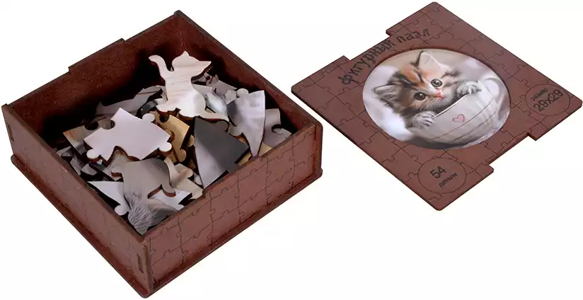 Пазл 54 эл.Котёнок в чашке КЧ54 дерево Апилка