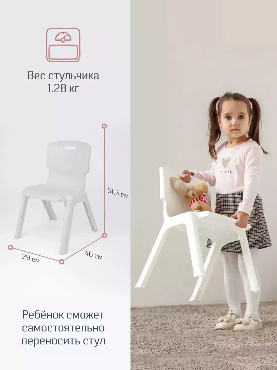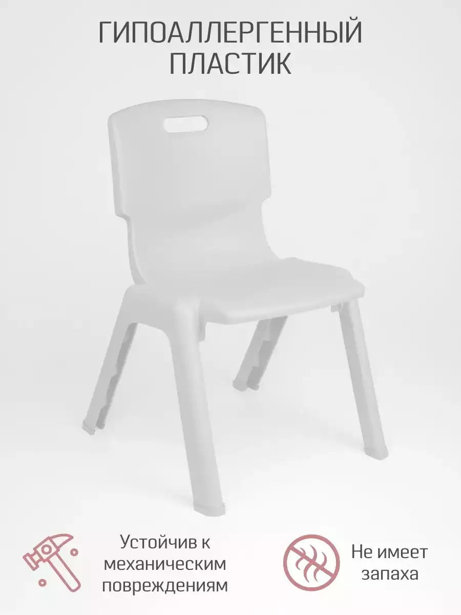 Пластиковый детский стул выдерживает нагрузку до 50 кг, отличается устойчивостью и прочностью, его каркас усилен ребрами жесткости.