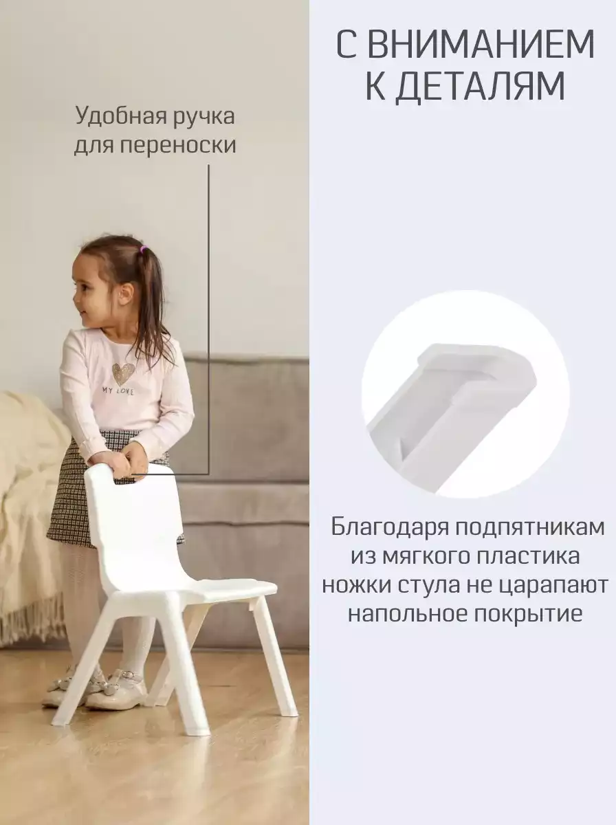 Стульчик детский со спинкой и анатомической формой сиденья обеспечивает комфорт во время использования и способствует формированию правильной осанки малыша. На стульчике ребенку будет удобно сидеть за столом, играть или заниматься творчеством.