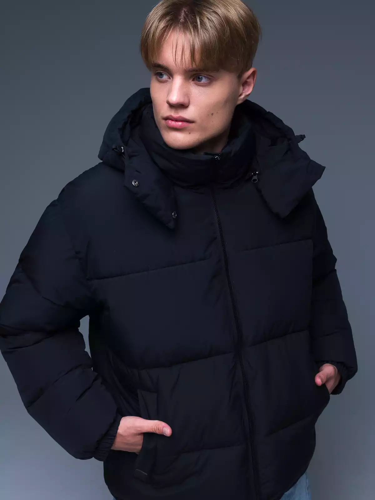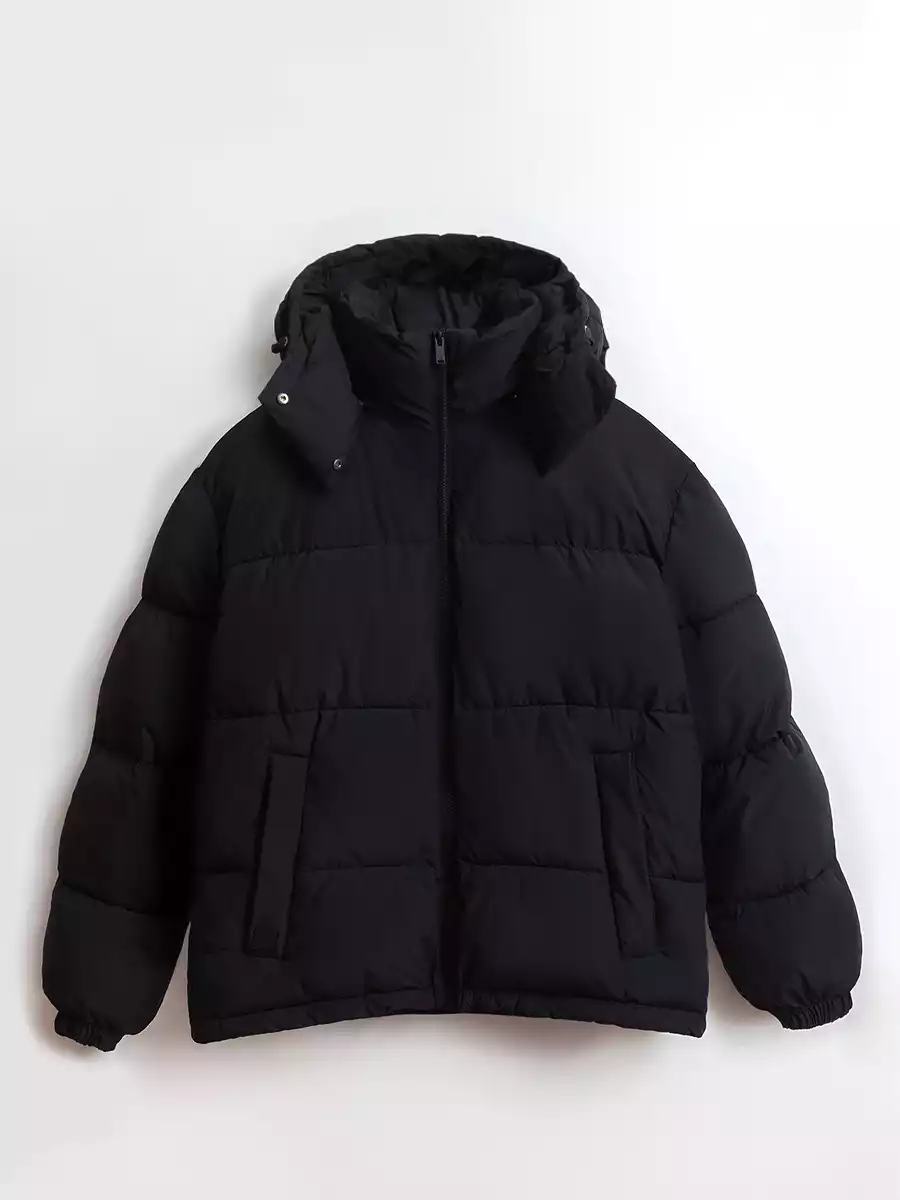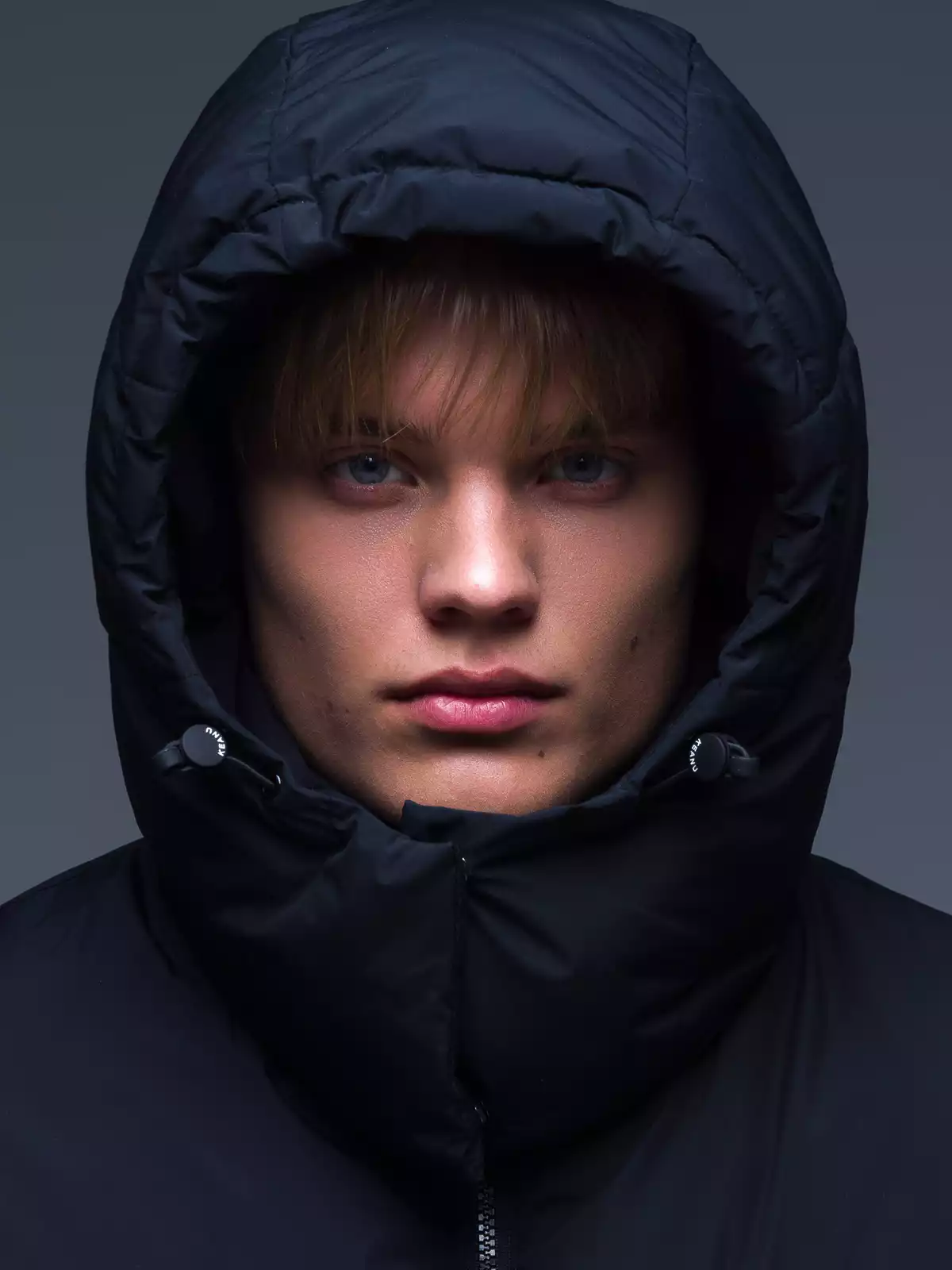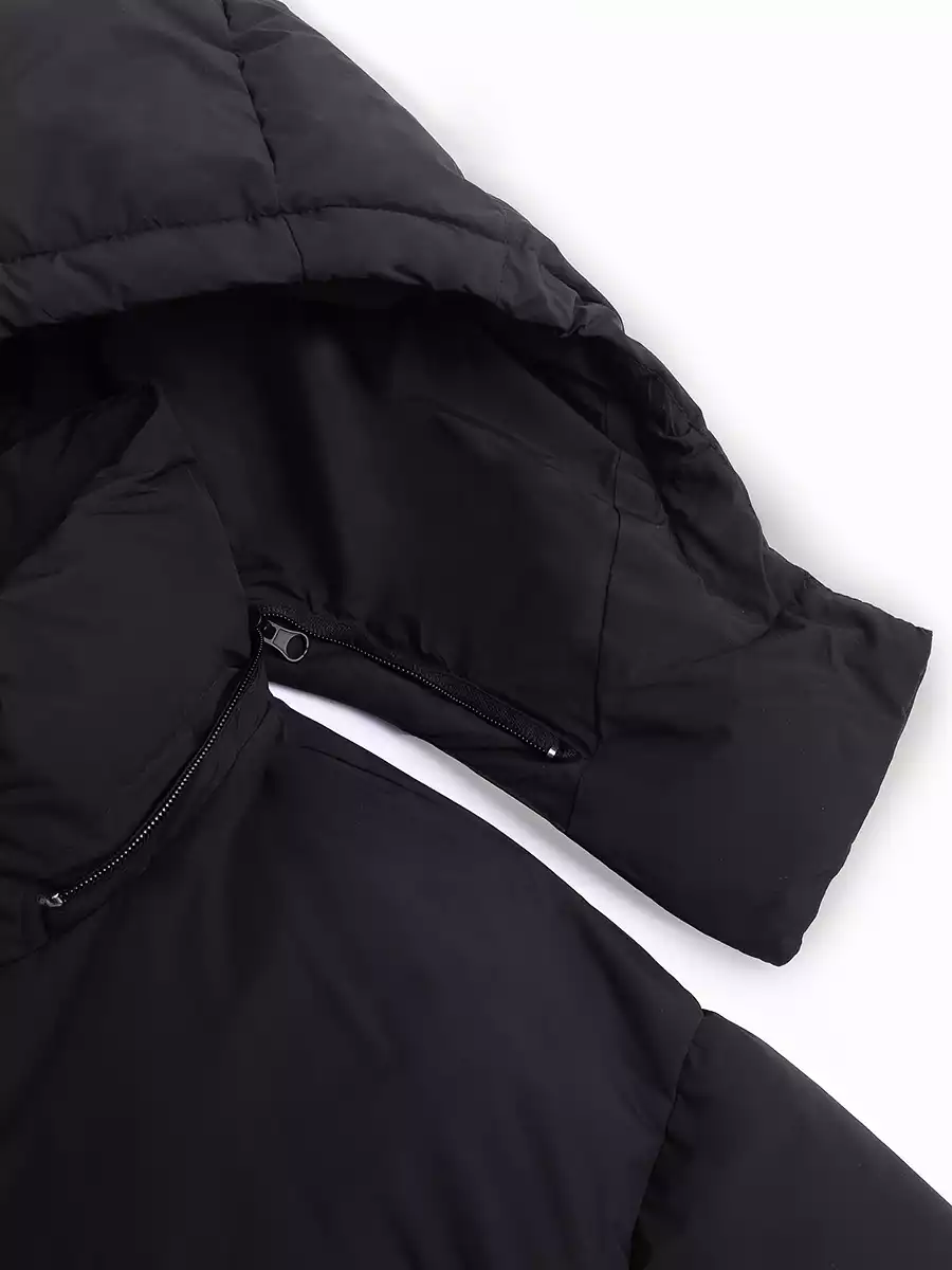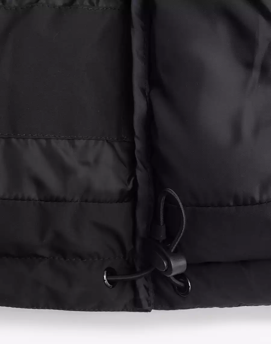 • Съемный капюшон на молнии с дополнительной фиксацией на кнопки в области горловины; по краю регулируемая утяжка на резину-шнур с фиксаторами;