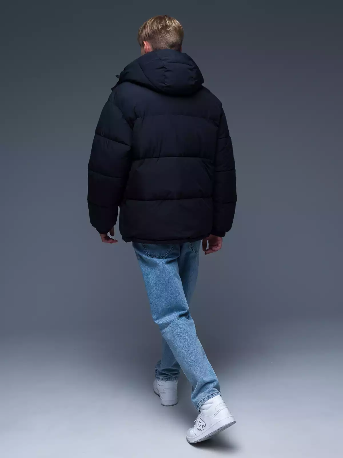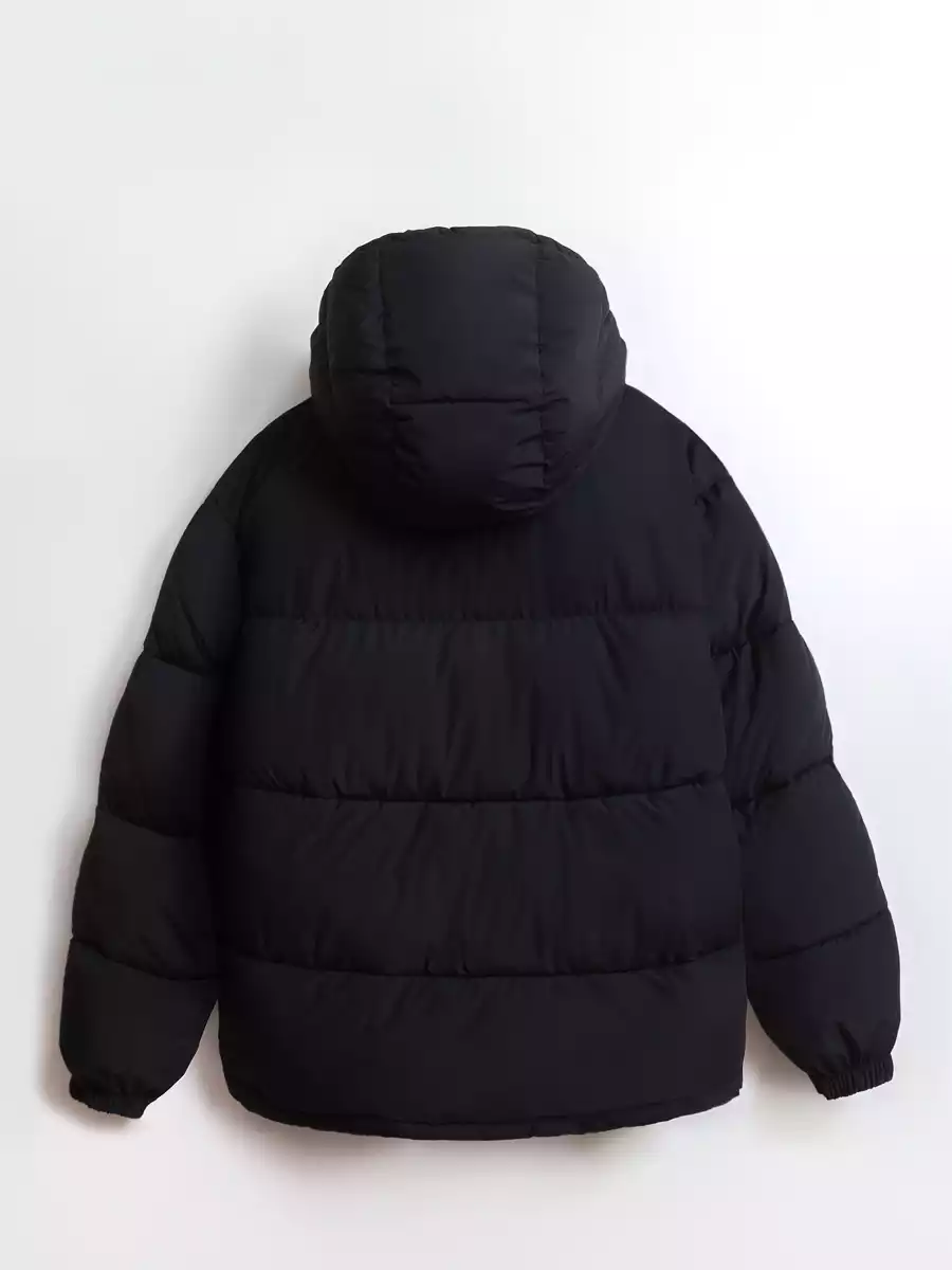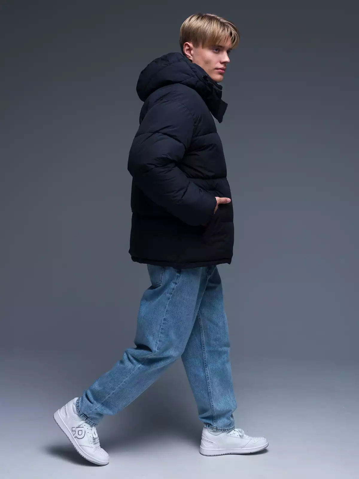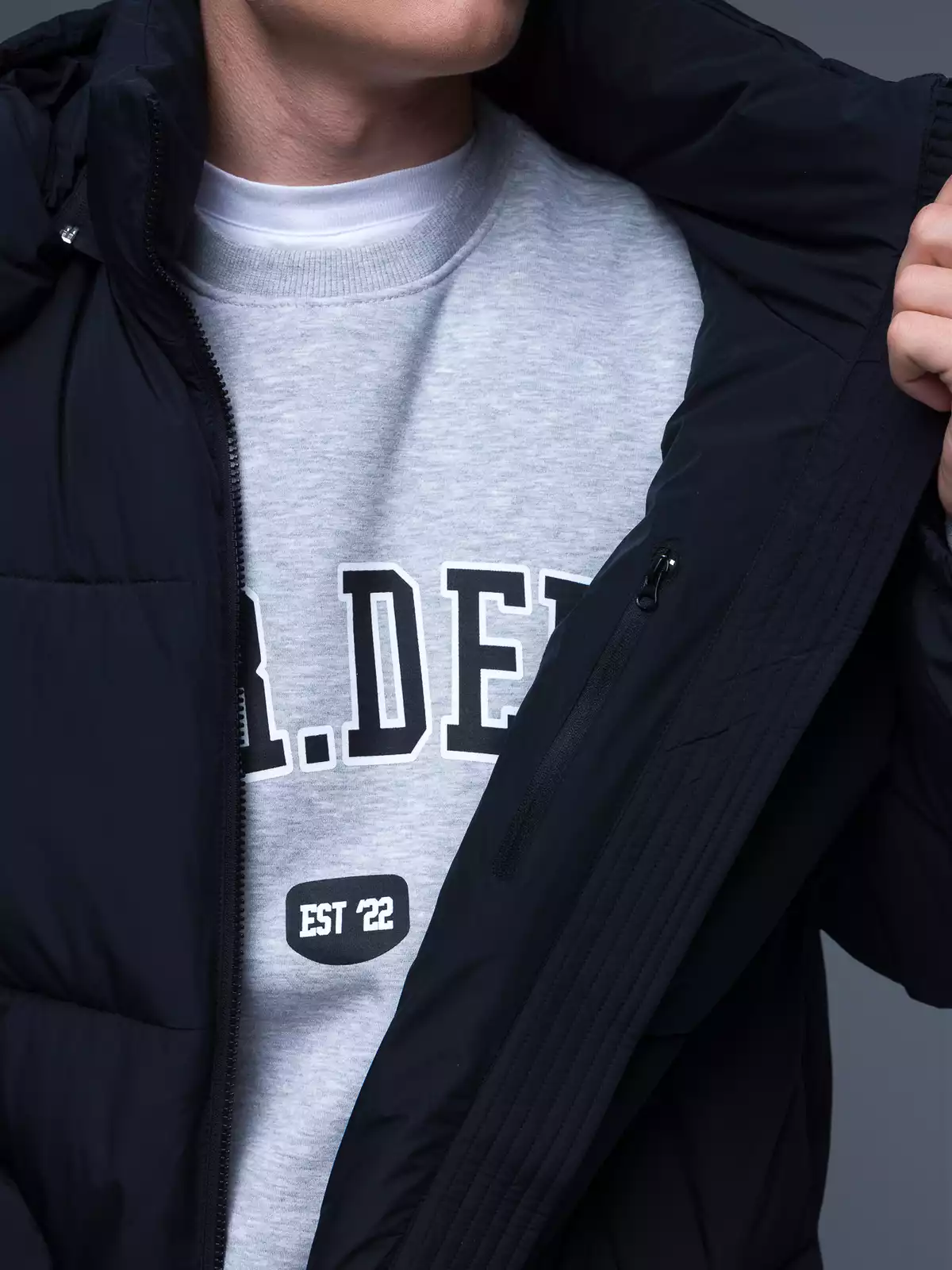 • Съемный капюшон на молнии с дополнительной фиксацией на кнопки в области горловины; по краю регулируемая утяжка на резину-шнур с фиксаторами;